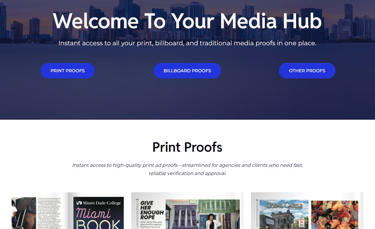 From print ads to billboards and more, your proofs are instantly available as soon as they’re published. No waiting, no back-and-forth ? just log in to your personalized Media Hub and access everything in one place, whenever you need it.